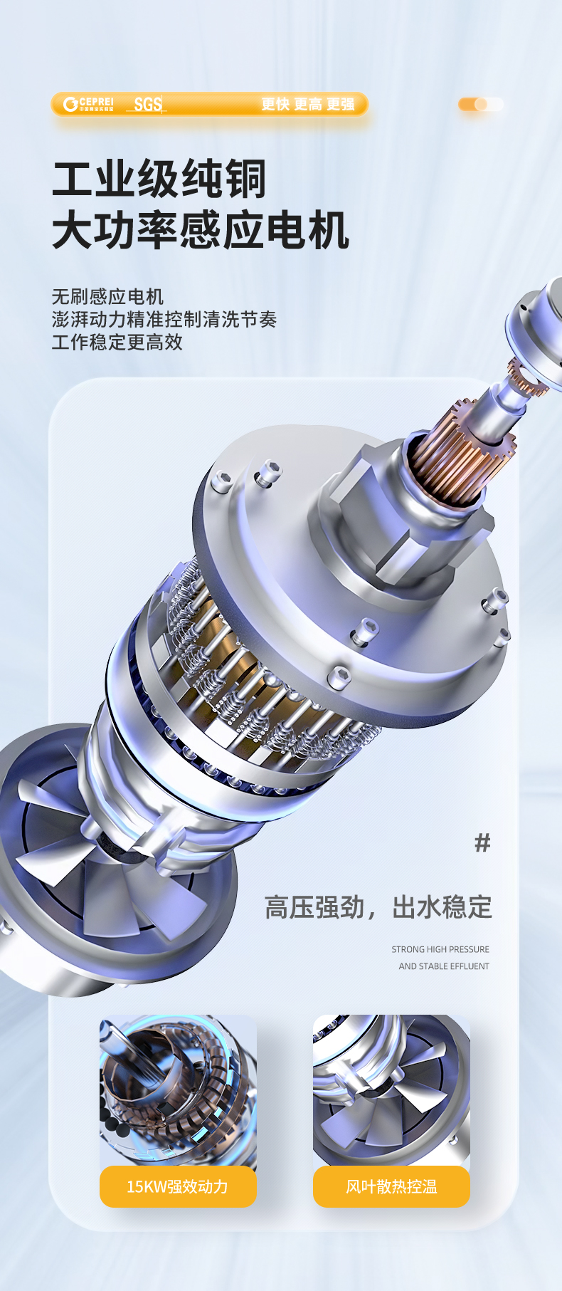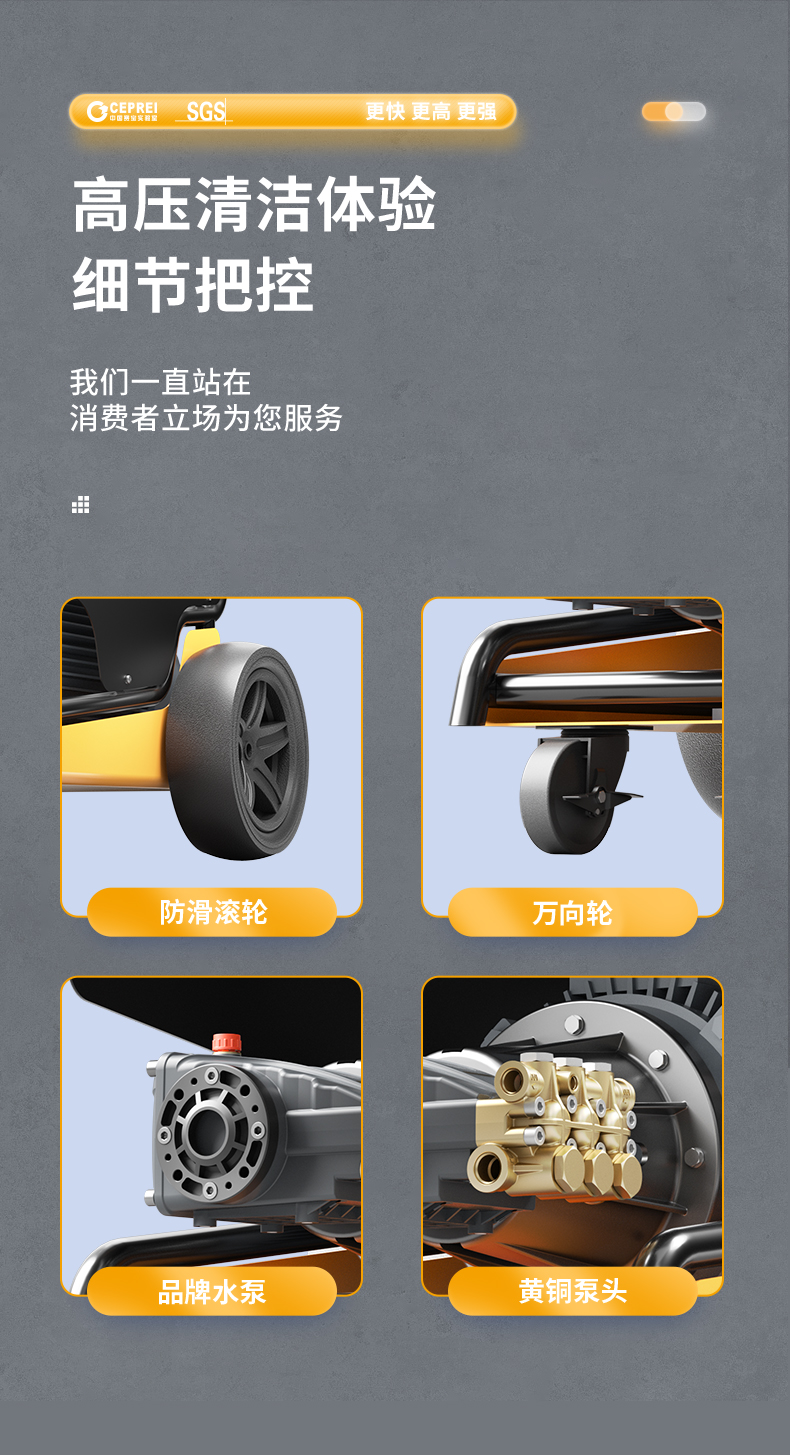 橙犀高壓清洗機 YG3515:強勁動力24小時可聯(lián)系工作,高壓不停機,還擁有溜達強勁優(yōu)勢,干凈快速清潔,工業(yè)級純銅,增壓自吸泵快速供水。