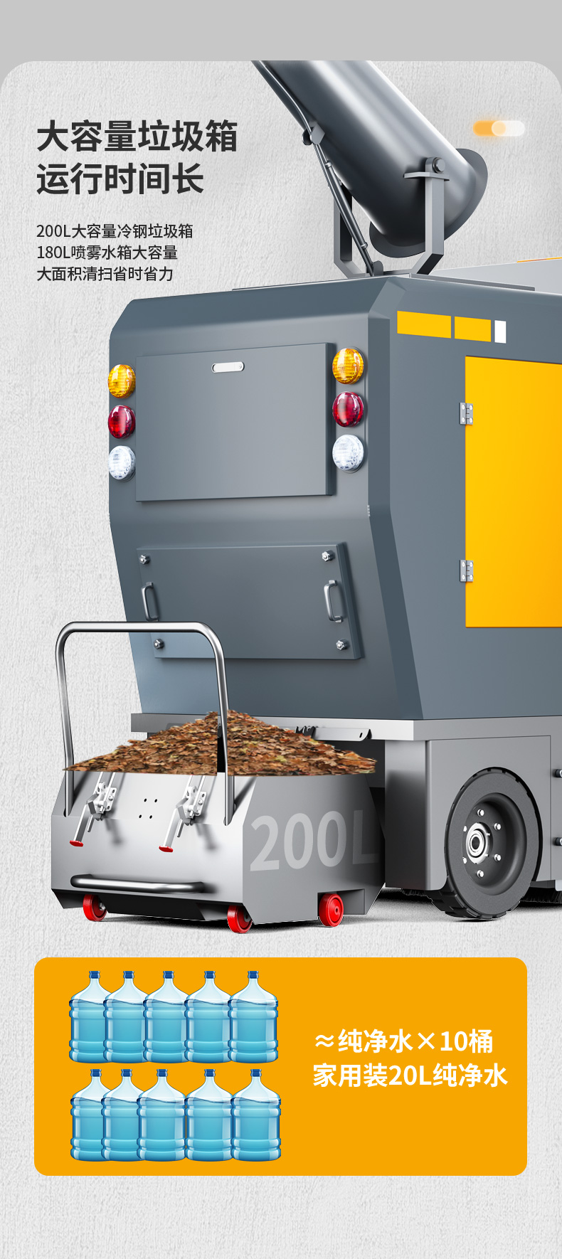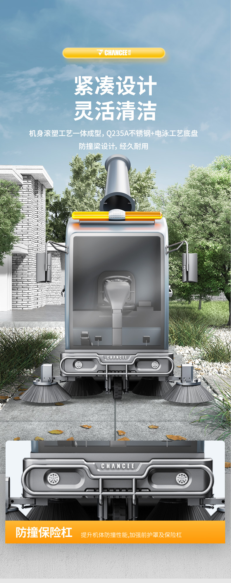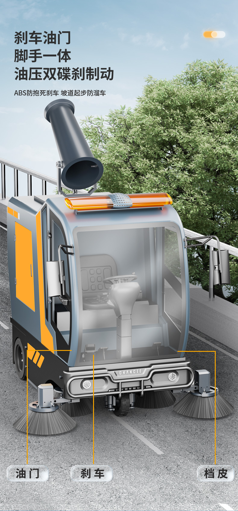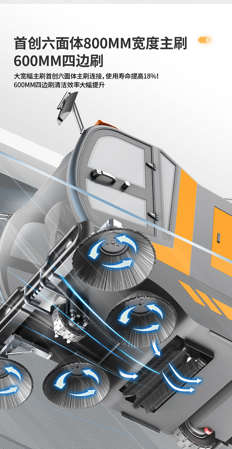 橙犀U200C 駕駛式掃地機(jī):橙犀駕駛式掃地機(jī)掃吸一體機(jī),同時還是霧炮降塵三合一的清掃車,使用橙犀首創(chuàng)六面體主刷清潔,清潔寬度達(dá)800mm,使用壽命提高了百分之18%,讓清潔更高效。