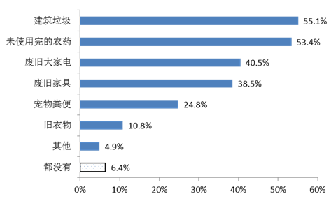 (二)絕大多數受訪居民都表示有不好處理的垃圾,主要是建筑垃圾、未使用完的農藥、廢舊大家電家具等。